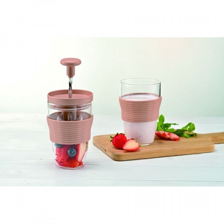 - 一人分のフレッシュジュースが手軽に作れるハンディージューサー。オリジナルレシピ付